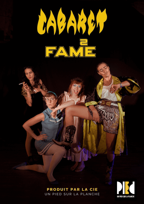 Les 25 et 26 avril à 20h30 La Compagnie Un Pied sur la Planche présente CABARET FAME Cabaret cirque Création collective - Public adulte. Avec : Angela Riegelhofer, Noémie Edé-Decultis, Majdouline Rami et Julie Maingonnat. Nous vous invitons à vivre une aventure jonchée de folies talentueuses, au fin fond d’un océan de gloire. Le Cabaret Fame présente un quatuor pris entre sensibilités et pouvoirs, pluie de paillettes et bain de sang. Le patron Bitcho roule sur ses patins brillants tout en se recoiffant d'un coup de peigne ; la toute mignonne et timide Nathalie surprend sans cesse par son panache et ses rimes ; la Sirène grandiloquente se présente ivre d'amour, et Micha Winehouse est l'invitée vedette du spectacle. Le format cabaret est revisité, déconstruit de la norme pour une touche nouvelle et avant-gardiste. Les relations entre les personnages nourrissent l'histoire et créent un récit entre les numéros dans lesquels se dévoilent les spécialités circassiennes : l'équilibrisme sur cannes, la jonglerie avec chapeaux et cerceaux, les acrobaties solo ou en couple, les patins à roulettes, le clown, le chant lyrique, le rap et plus encore... Durée du spectacle : 1h10